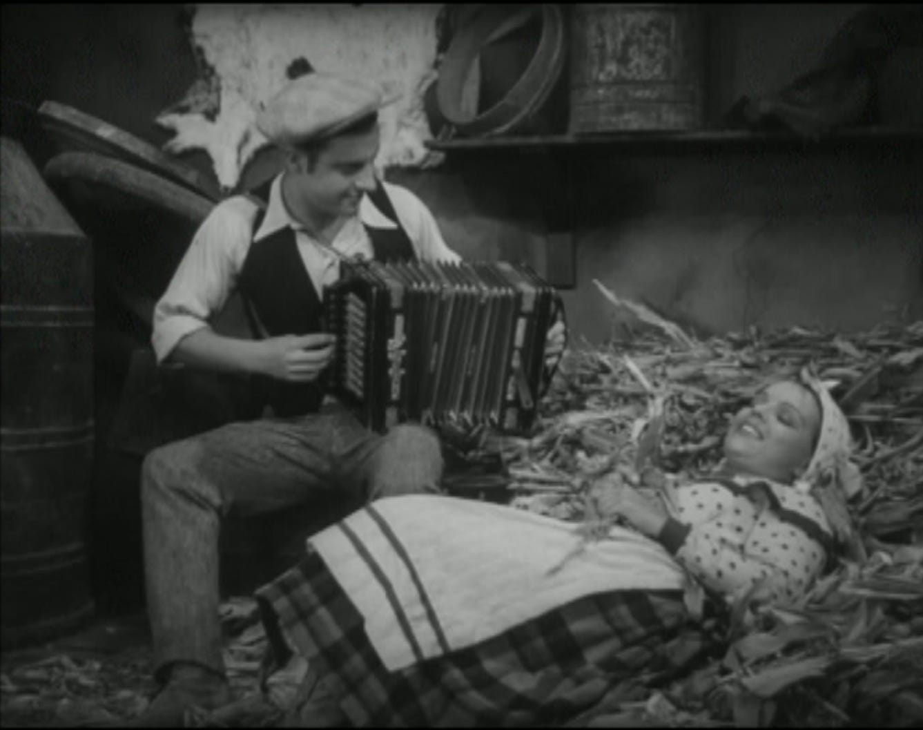 Chico was also central to another of the film’s key themes: that of family and patrimony. It portrayed his youthful masculinity as a potentially disruptive force, particularly when it lured him to the city or into risky confrontations with Luis, but also as one that had to be directed into the revival of his father’s struggling business. The need for him to bring a firm hand, quite literally, to proceedings was demonstrated in an instance where he struck his father’s drunken coachman Chitas, whose inebriety was a major contributor to the family firm’s decline, in the face and then fired him. While Jacinto was later shown promising Chitas that he would speak to Chico about giving him his job back, again highlighting that the film was far from entirely condoning of Chico’s male aggression, nonetheless the logic of the film was that it was also a vital force of renewal of rural life. This renewal also required him to choose marriage to Gracinda over the pursuit of the philandering Maria. The scene with the children’s play, moreover, signified the need to perpetuate the union of Chico and Gracinda among the next generation. The play, in which a wicked princess from the city had a spell cast on a shepherd to stop him returning to his true love in the countryside, served as a transparent metaphor for Gracinda’s and Chico’s relationship; in the ensuing musical number, the children were also shown mimicking the courtship rituals of their adult counterparts.